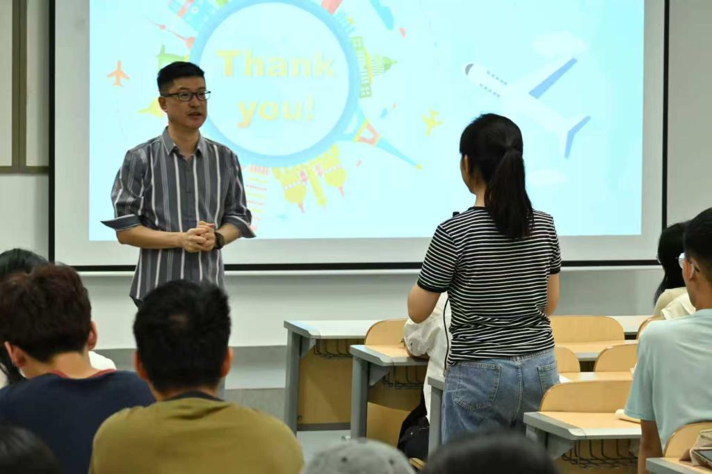 在互动环节,文兵老师用情景模拟、对话体验等方式邀请同学们切身体会各种情况下的发音语境,并对同学们提出的英语发音、英语词汇和英语学习技巧等问题作出解答。他提到,作为大学生,应更加注重英文的实用性,拒绝哑巴英语,充分理解英语发音标准的优势。同时利用好翻译软件、视频网站等网络资源,拓宽视野。