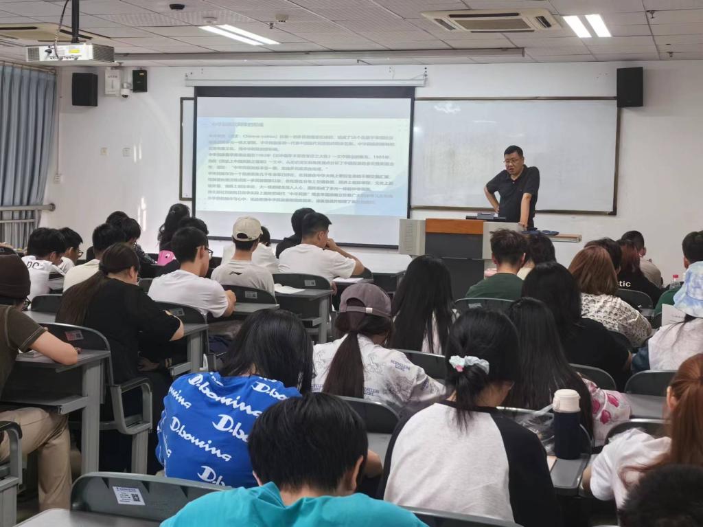 当前世界正经历百年未有之大变局,我国正处于实现中华民族伟大复兴关键时期,为了让学生观大势、明大势,正确梳理中华民族与各民族、中华文化与各民族文化的关系,以凝聚共识,画出最大同心圆,以社会主义事业接班人身份为社会主义发展贡献力量,5月24日,beat365正版唯一官方网站邀请学院李卫东副校长为英语2022级学生讲授《形势与政策》课程,beat365正版唯一官方网站院长肖凌出席并主持本次授课。