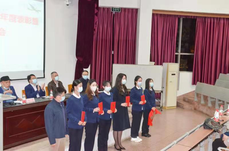 在年度表彰环节中,黄大勇副院长代表学院宣读了2020—2021学年年度表彰文件,对获得学院表彰的先进个人及集体,鼓励他们怀感恩之心,再接再厉,再创辉煌。学院领导依次上台为获奖个人与集体颁发证书并合影留念。