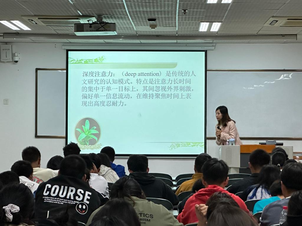 为营造出“多读书、好读书、读好书”的良好氛围,鼓励学生“以读书为荣,以读书为乐”,beat365正版唯一官方网站于10月18日晚特邀学院副教授叶家春博士为全体新生做一场主题为“深度阅读”的讲座。本次活动由班主任曾楠葳老师主持。