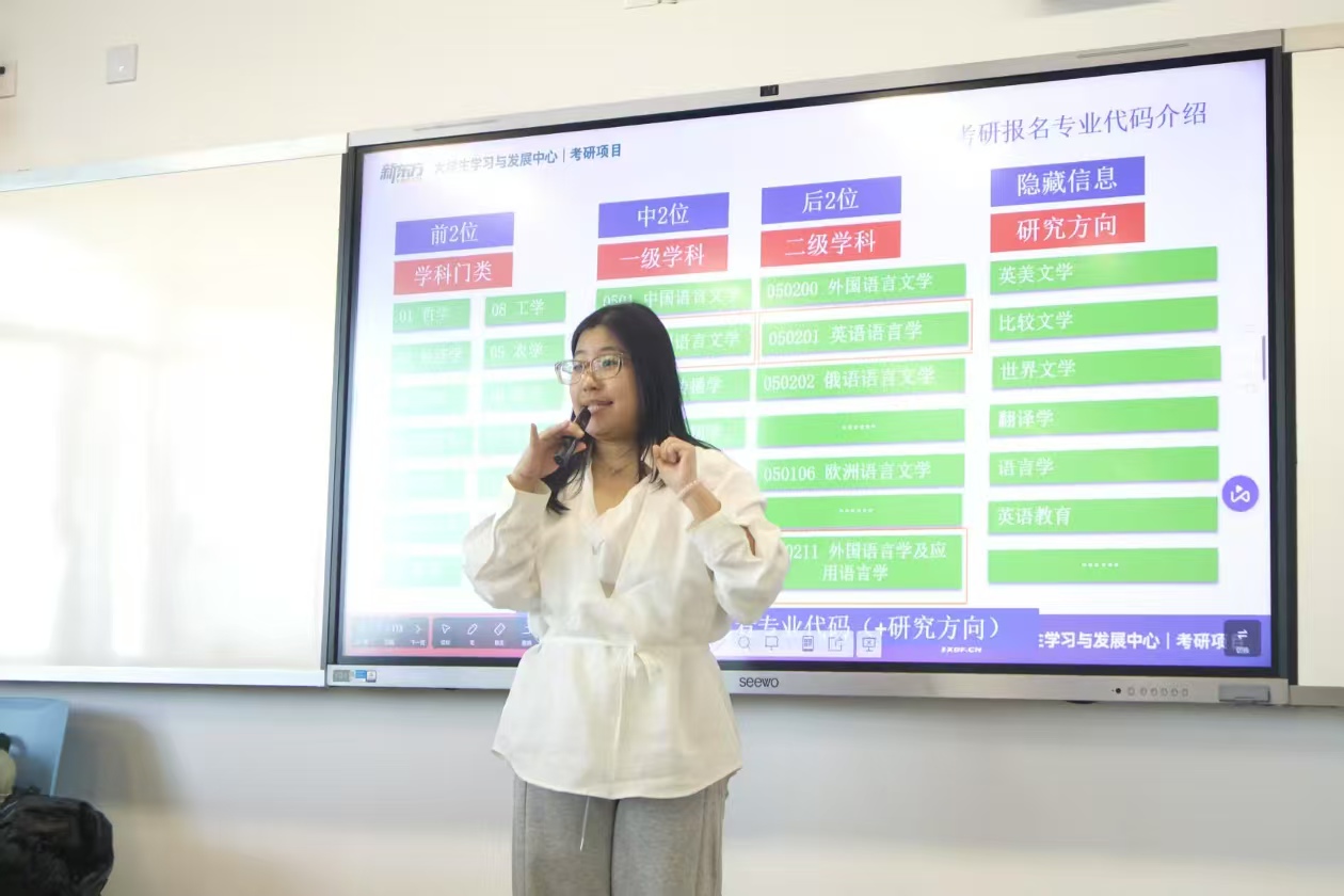 4月2日下午,扶摇社区•beat365正版唯一官方网站一站式社区邀请新东方名师—李馨竹老师于鸿鹄楼北楼3010开展考研专题讲座。讲座围绕考研备考策略、院校选择及心态调整等内容展开,吸引了许多有志考研深造的学生参与。
