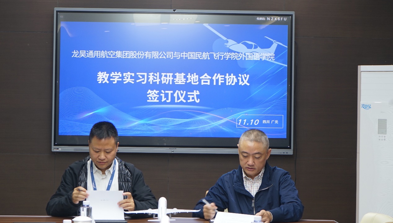 在龙昊航空科技有限公司总经理白宏秋、副总经理张晓延的陪同下,张铭书记一行5人实地调研了龙昊通航集团总部校区,详细了解了校区建设、资源配置、模拟训练、日常教学等方面的情况。实地参观后,双方开展了座谈交流并签订了教学实习科研基地合作协议。龙昊通航集团董事长兼总裁凌晓煕、副董事长林嘉豪对张铭书记一行的到来表示了热烈欢迎。龙昊航空科技有限公司总经理白宏秋详细介绍了集团的业务板块、管理团队、专业队伍、机队规模、企业文化等情况。双方就民航英语教学、课程设置、ICAO英语能力测评与提升、学生实习就业等方面进行了深度交流,探索了产学研结合的创新合作模式,并对未来双方进一步加强合作达成了共识。